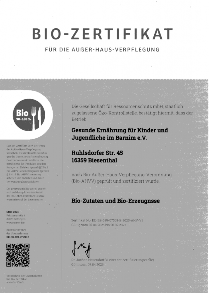 Bio regionaler Mittagstisch (BIO_Zertifikat)